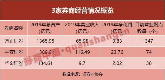 公开数据显示,尽管方正证券是一家上市券商,或许这些年连续受股东问题纠葛,无论体量还是营收都比平安证券要小。2019年方正证券总资产规模1365.95亿,而平安证券为1389.91亿;营收和净利润方面,方正证券更是比平安证券要少一个量级。