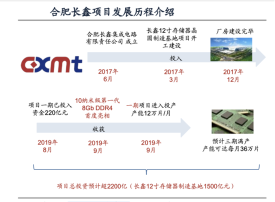 2017年10月,兆易创新宣布与合肥市产业投资控股(集团)有限公司签署了《关于存储器研发项目之合作协议》,将开展19nm制程工艺存储器 (含DRAM等)的研发项目,预算约为180亿元人民币,整个项目通过合肥长鑫、长鑫存储、睿力集成三个运营主体进行,目标是在2018年12月31日前研发成功,该项目所需投资由兆易创新与合肥投资公司根据1:4的比例负责筹集。